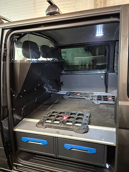 PPF-folie i front for optimal lakkbeskyttelse Panserbeskytter Sortimo Smartfloor innredning i varerom Takrails Integrerte Lazer-lys for bedre sikt Bilen har aldri hatt problemer, og alle servicer er utført på samme verksted. Den er blitt polert to ganger i året og er meget pent holdt både innvendig og utvendig. Dette er en bil som er tatt godt vare på og som gir et svært godt inntrykk.