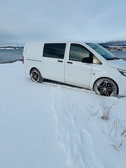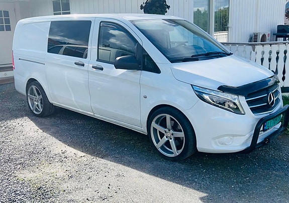 Dette er ikke en "hvilken som helst" arbeidsbil. Bilen er oppgradert med godkjent senkesett og massive 20" sommerhjul som gir den et helt annet uttrykk enn en standard Vito. Den har vært brukt til lett næring og privat bruk, noe som gjenspeiles i bilens gode tilstand.